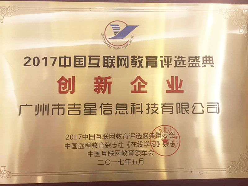 熱烈祝賀吉星科技榮獲“2017中國互聯網教育創新企業”