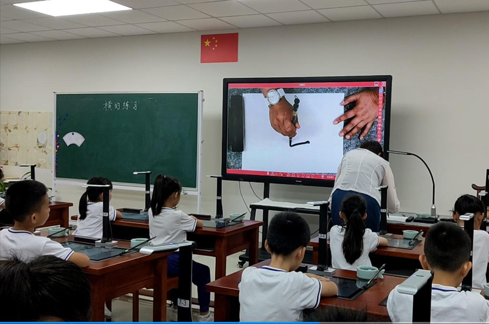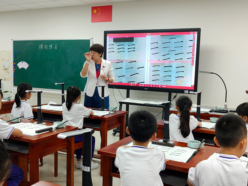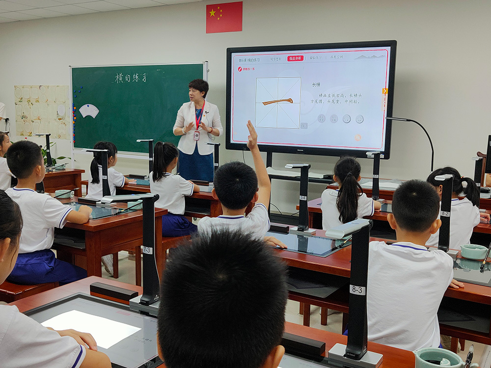 在6月下旬的書法特色教育創(chuàng)建與管理觀摩學習活動中,老師們觀摩了沙面小學姚丹校長執(zhí)教的書法示范課《橫的練習》,切身感受到吉星智慧書法課堂的魅力,體驗科技與書法的結(jié)合。