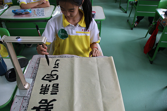小美是某小學五年級的學生,她的書法作品一直得到老師和學生的廣泛認可,每次面對老師的贊賞和同學們羨慕的眼神,小美都非常開心,充滿學習的動力,而同學們也都以她作為榜樣,相互促進,小美也非常愿意幫助同學們共同學習,班級書法學習氛圍日益濃厚。這節書法教學課,小美使用了吉星的無線視頻展臺作為展示設備,在架設連接好設備,調整角度后,小美拿起了毛筆,在紙上寫下了自己優美的文字,同學們通過大屏,直接觀看了寫字過程,學習了小美的筆鋒走向。