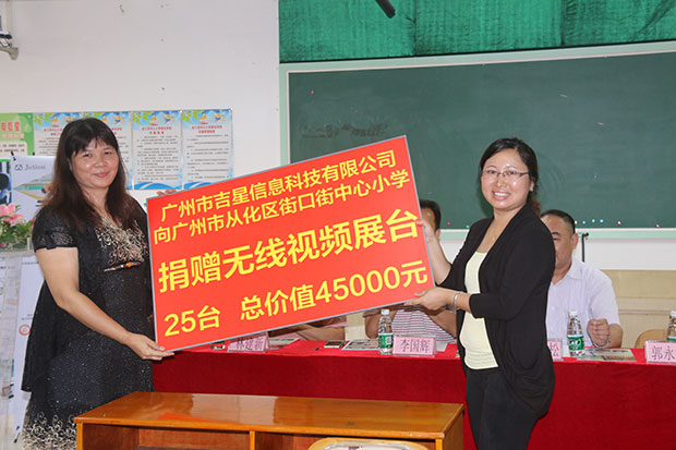2015年11月18日下午,吉星向廣州市從化區(qū)街口街中心小學捐贈儀式在街口街中心小學的多媒體會議室進行。本次捐贈活動出席人員有廣州市教育裝備中心領導、從化區(qū)教育局領導及街口街中心小學的校長和全體老師,當天從化區(qū)其他中小學校長及教師代表也前來觀禮,現(xiàn)場將近100人。
