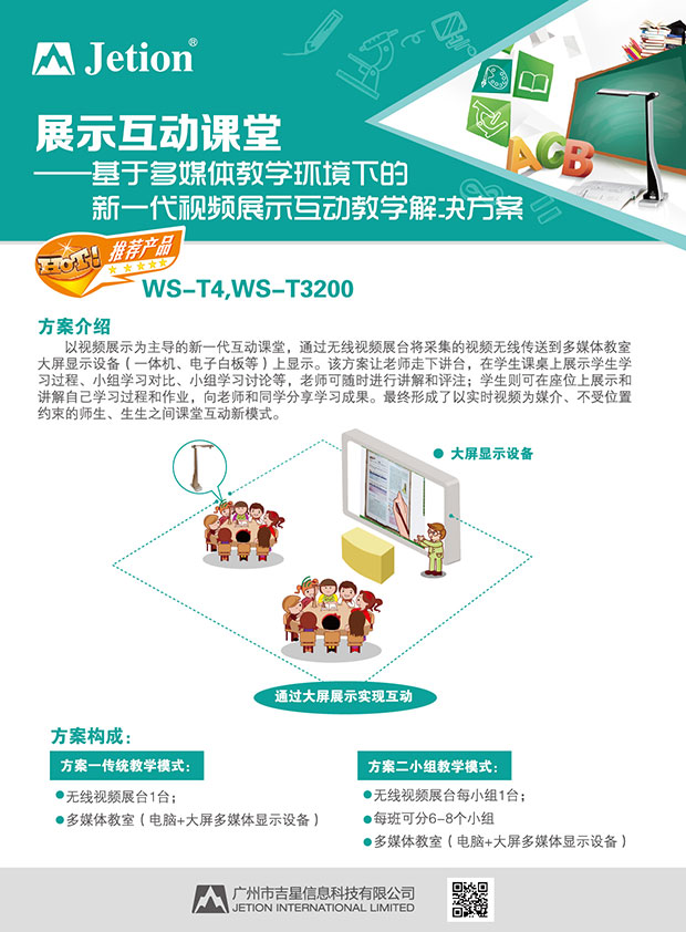 “班班通”電教設備普及是一個事關教育發展的重要戰略決策。把現代教育充分融入學校的教育教學,使之成為常規教學資源和教學手段尋求有效應用機制與模型,提高每一堂課的教學質量,有效解決讓所有孩子上好學的問題。此次廣州吉星企業中標項目,正是“班班通”戰略最堅實的基礎--“通”硬件。吉星無線視頻展臺采用無線WIFI技術,支持筆記本,電腦,一體機,白板,平板,手機等設備無線連接,老師可實現課堂上的移動展示,不受任何位置約束,既可以在講臺上做展示,也可以隨時移動到學生的課桌上做展示,從而輕松實現了師生、生生之間課堂互動的新模式。這必將豐富老師教學多樣性,激發學生的學習興趣,從而全面提升基礎教育教學質量。
