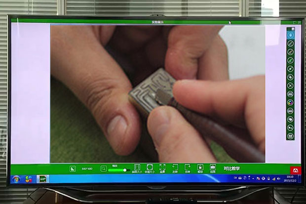 吉星,作為一家專注于智能教育的高科技企業(yè),將提供自主研發(fā)的無(wú)線視頻展臺(tái)設(shè)備,在課堂上將篆刻運(yùn)筆、力道等細(xì)節(jié)展示到大屏幕上。通過(guò)大屏幕,老師可以快速向?qū)W生示范篆刻的要點(diǎn)和細(xì)節(jié),可同時(shí)指導(dǎo)更多的學(xué)生。學(xué)生通過(guò)大屏顯示設(shè)備清晰觀看到老師篆刻示范全過(guò)程,也可以觀看其他同學(xué)的篆刻過(guò)程和作品和老師的即時(shí)講解批注,找到自身不足,及時(shí)改進(jìn)。除了課堂上的實(shí)時(shí)互動(dòng)展示教學(xué),還可以對(duì)篆刻教學(xué)過(guò)程進(jìn)行錄制,供學(xué)生課后反復(fù)學(xué)習(xí),也可以傳播給更多感興趣的人,達(dá)到快速學(xué)習(xí)的效果。