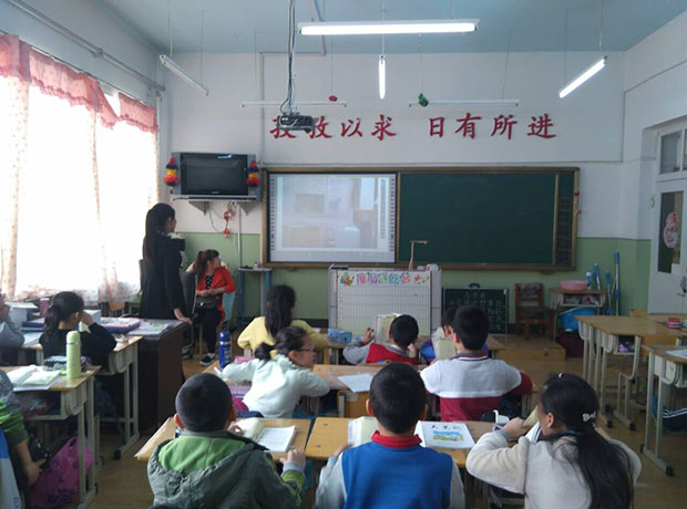 陳老師是二年一班的班主任及語(yǔ)文老師,教學(xué)不單單是教會(huì)學(xué)生們書本里的知識(shí),課外閱讀、新聞時(shí)事都是非常重要的課題。讀報(bào)不再是傳閱,或者人手一份的閱讀模式。吉星無(wú)線展臺(tái)輕松把報(bào)紙里的圖文同步顯示在大白板里。讓全班同學(xué)一起看,一起讀,一起討論。高效的閱讀方式深的同學(xué)們喜愛。